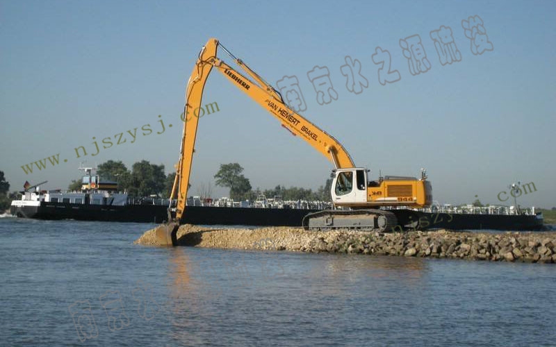 与普通陆上挖机使用方法相同,但长臂挖机因为臂长而导致使用不灵活、施工效率相对较低。由于臂长力矩较大,挖掘力相对普通挖机小的多,所以不能用于挖掘硬质土。